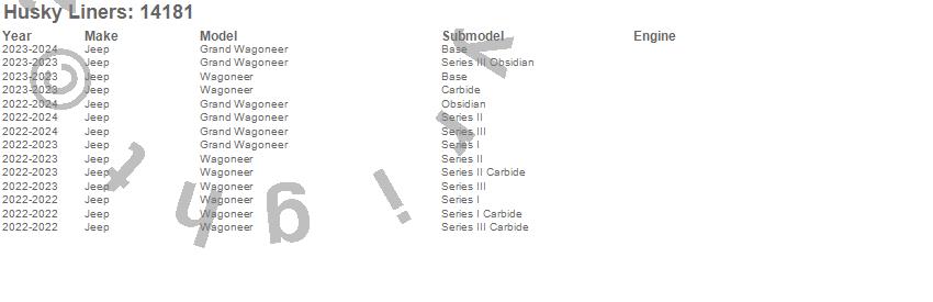 Below is an abbreviated list of applications for the WeatherBeater Floor Liner.