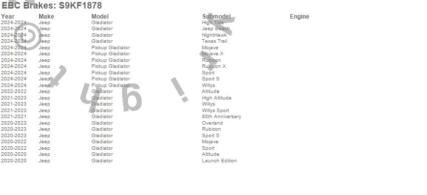 Below is an abbreviated list of applications for the S9 Kits Yellowstuff and USR Rotors.