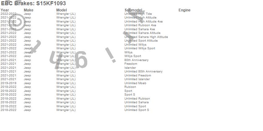 Below is an abbreviated list of applications for the S15 Kit Extra Duty and USR Rotors.
