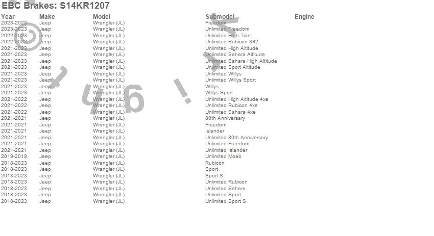 Below is an abbreviated list of applications for the S14 Kits Greenstuff and RK Rotors SUV.