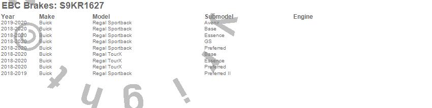 Below is an abbreviated list of applications for the S9 Kits Yellowstuff and USR Rotors.