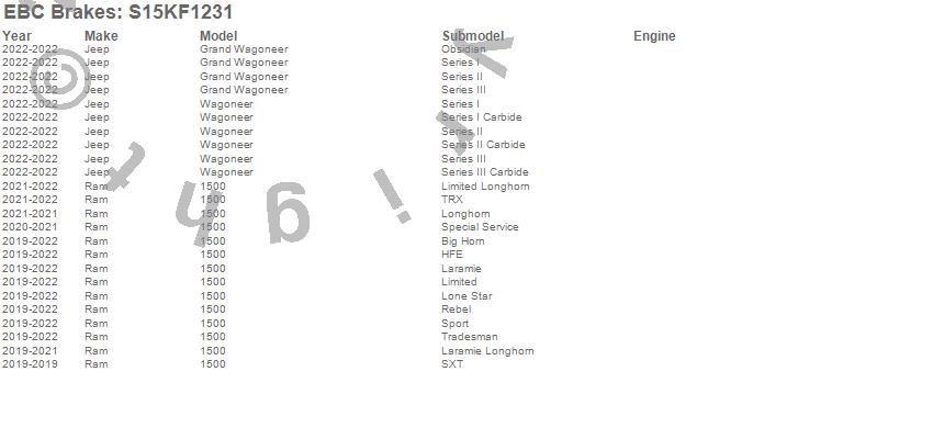 Below is an abbreviated list of applications for the S15 Kit Extra Duty and USR Rotors.