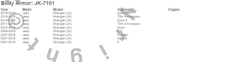 Wrangler (JK), Jeep, 2018, 2017, 2016, 2015, 2014, 2013, 2012, 2011, 2010, 2009, 2008, 2007