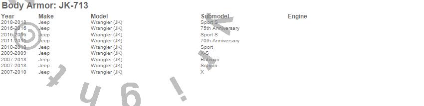 Wrangler (JK), Jeep, 2018, 2017, 2016, 2015, 2014, 2013, 2012, 2011, 2010, 2009, 2008, 2007
