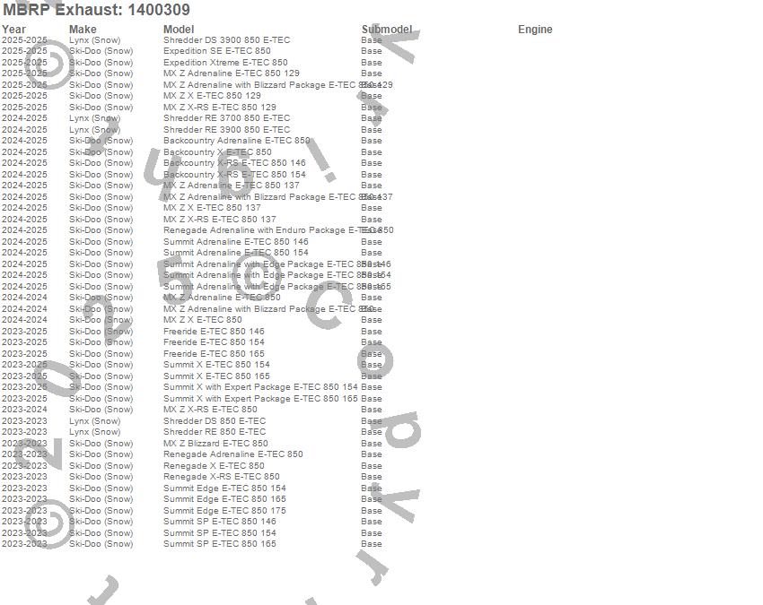 Below is an abbreviated list of applications for the Snowmobile Race Exhaust.