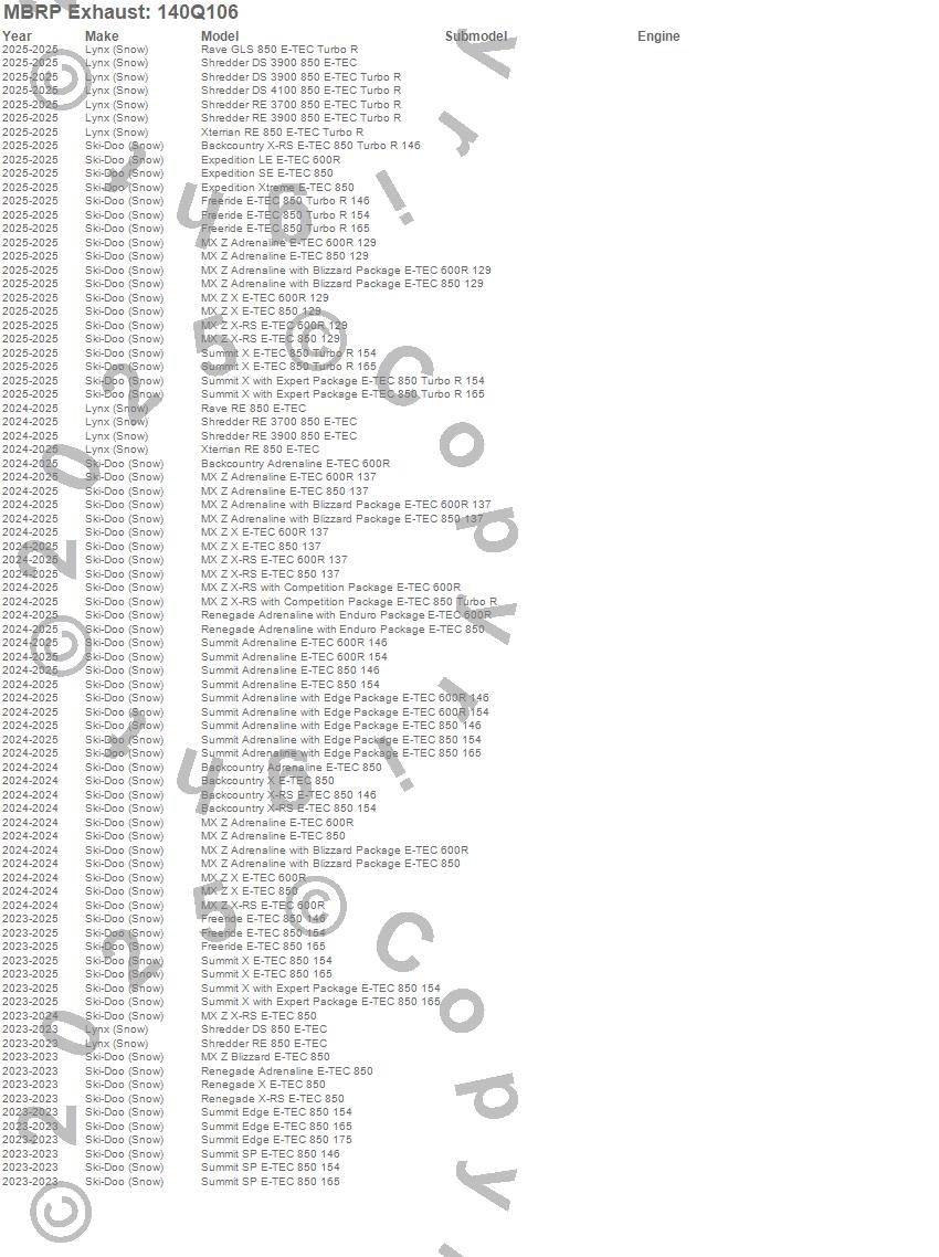 Below is an abbreviated list of applications for the Snowmobile Quiet Trail Muffler.
