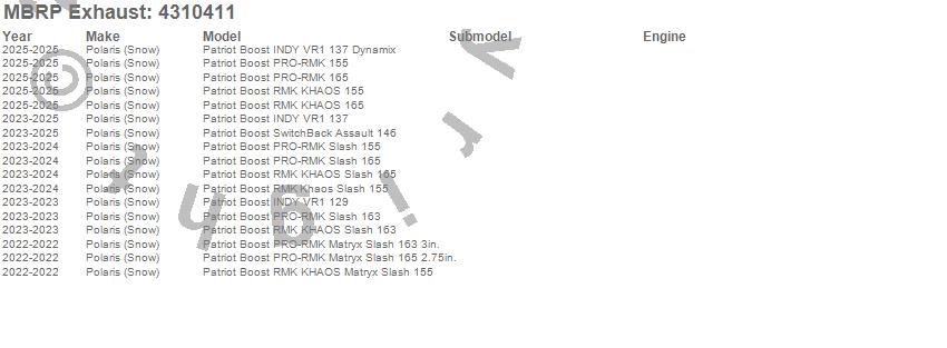 Below is an abbreviated list of applications for the Snowmobile Race Muffler.