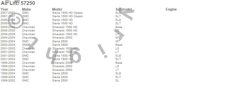 Below is an abbreviated list of applications for the LoadLifter 5000 Leveling Kit.
