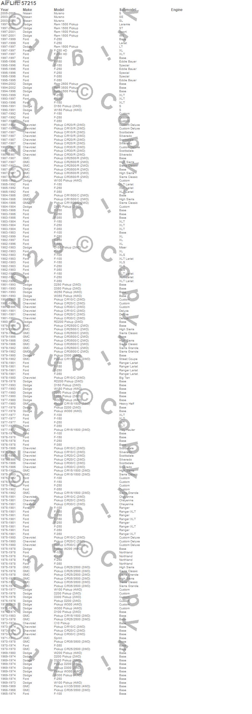 Below is an abbreviated list of applications for the LoadLifter 5000 Leveling Kit.