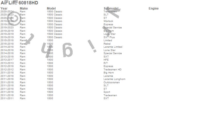 Below is an abbreviated list of applications for the Air Lift 1000 Heavy Duty Coil Spring Kit.