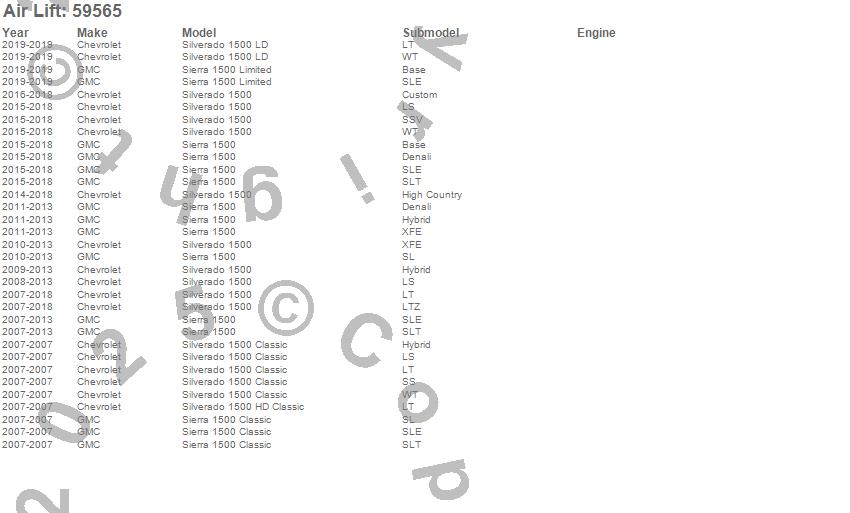 Below is an abbreviated list of applications for the Ride Control Kit.