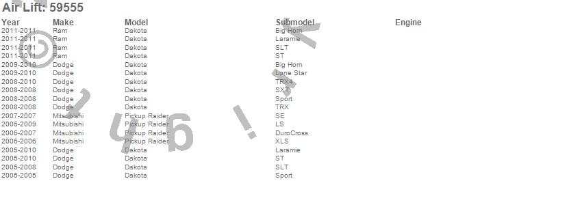 Below is an abbreviated list of applications for the Ride Control Kit.