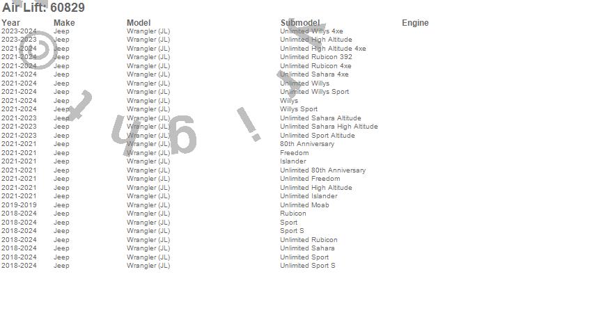 Below is an abbreviated list of applications for the Air Lift 1000 Coil Spring.