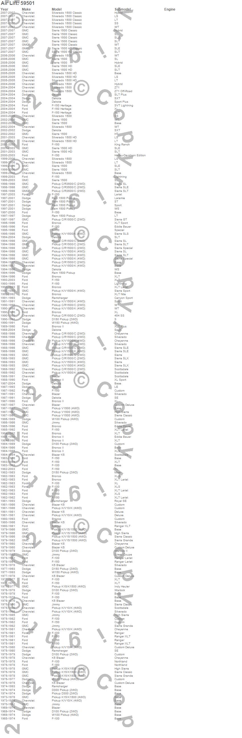 Below is an abbreviated list of applications for the Ride Control Kit.