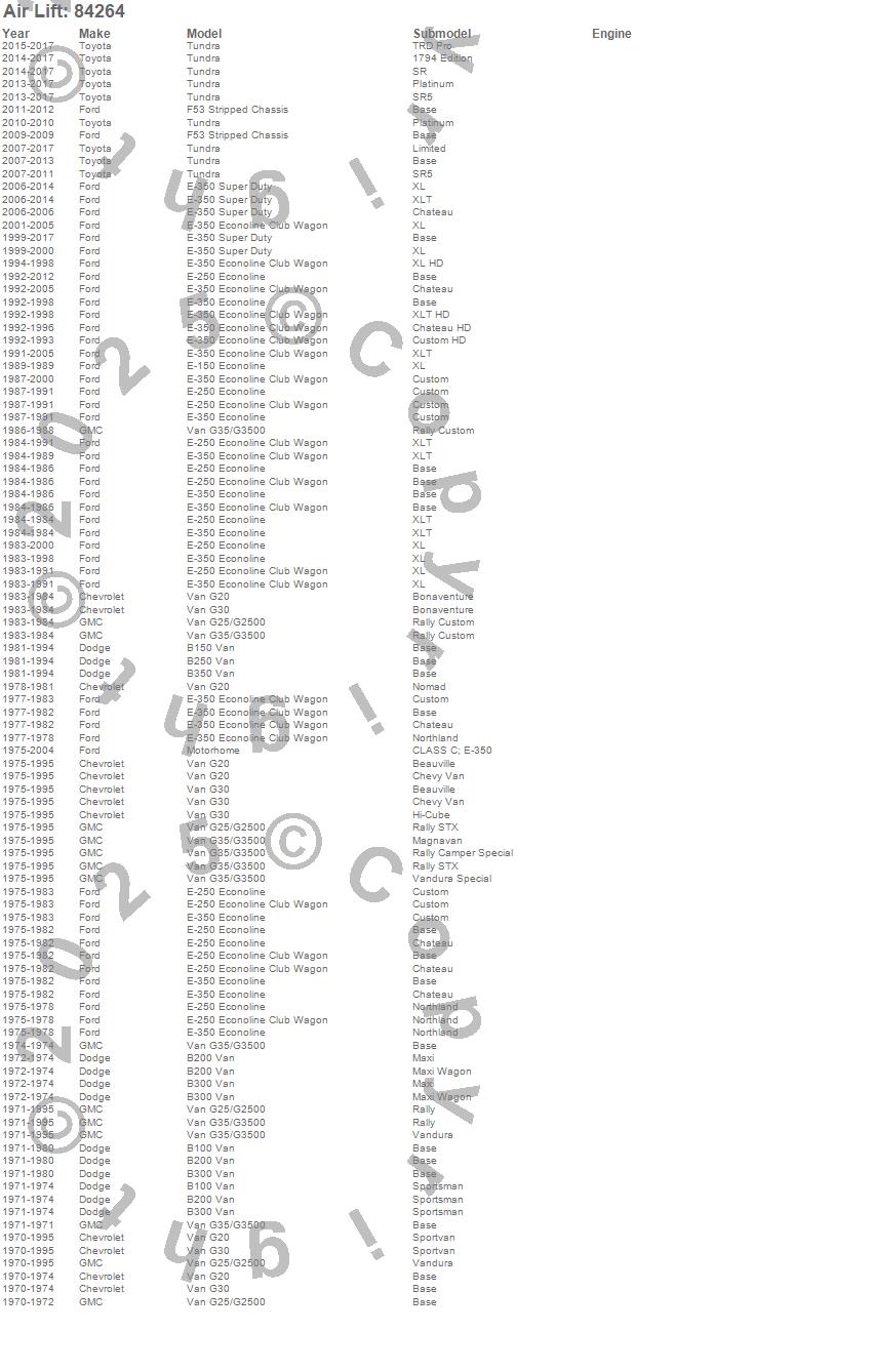Below is an abbreviated list of applications for the LoadLifter 5000 Ultimate Replacement Air Spring.