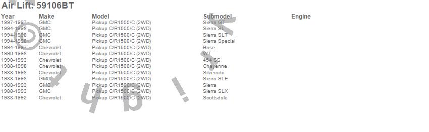Below is an abbreviated list of applications for the Slam Air Plus Adjustable Air Springs For Lowered Trucks.