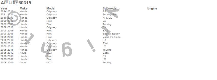 Below is an abbreviated list of applications for the Air Lift 1000 Replacement Bag.