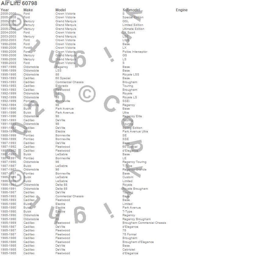 60 Special, 88, 98, Bonneville, Commercial Chassis, Crown Victoria, Delta 88, DeVille, Eldorado, Electra, Fleetwood, Grand Marquis, LeSabre, LSS, Park Avenue, Regency, Buick, Cadillac, Ford, Mercury