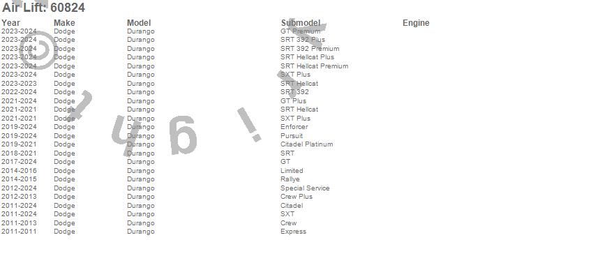 Below is an abbreviated list of applications for the Air Lift 1000 Coil Spring.