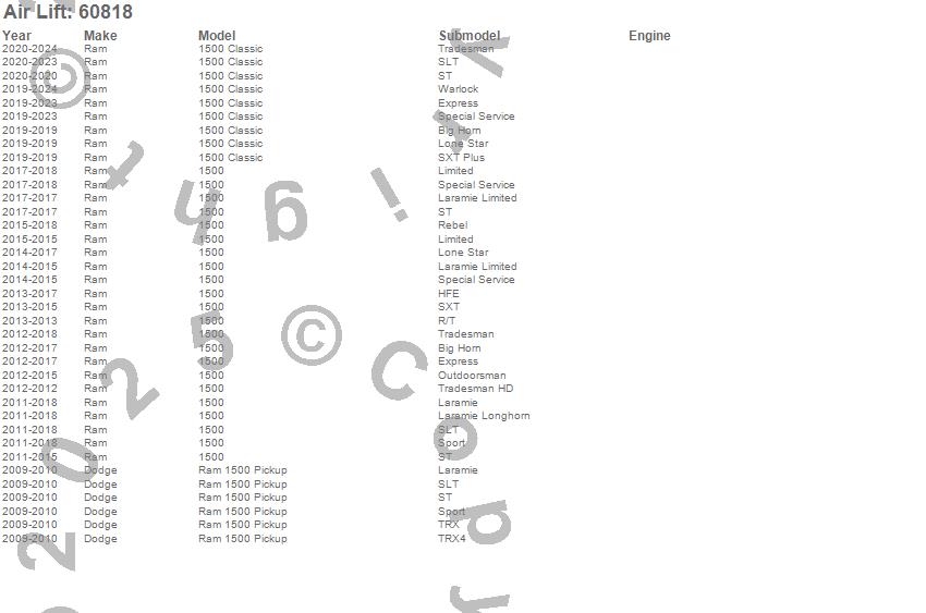 Below is an abbreviated list of applications for the Air Lift 1000 Coil Spring.