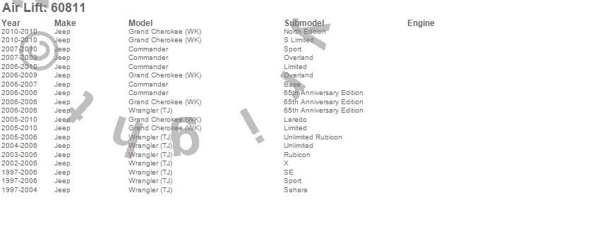 Below is an abbreviated list of applications for the Air Lift 1000 Coil Spring.