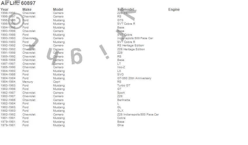 Camaro, Capri, Mustang, Chevrolet, Ford, Mercury, 1998, 1997, 1996, 1995, 1994, 1993, 1992, 1991, 1990, 1989, 1988, 1987, 1986, 1985