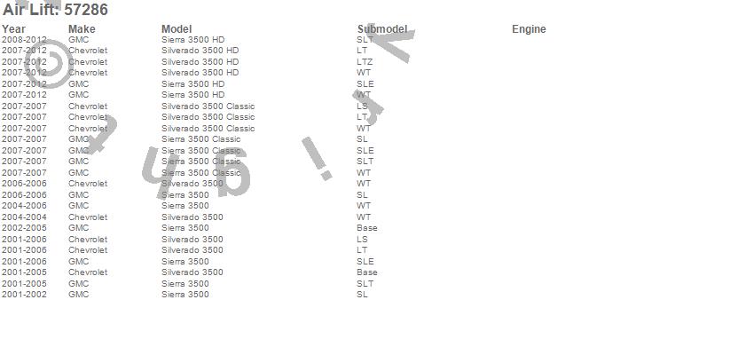 Below is an abbreviated list of applications for the LoadLifter 5000 Leveling Kit.