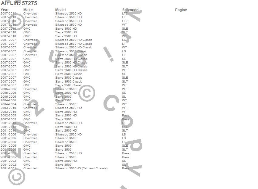 Below is an abbreviated list of applications for the LoadLifter 5000 Leveling Kit.