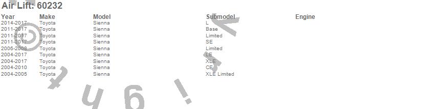 Below is an abbreviated list of applications for the Air Lift 1000 Replacement Bag.