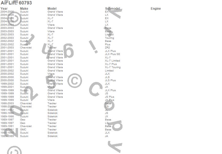 Grand Vitara, Sidekick, Tracker, Vitara, XL-7, Chevrolet, Geo, GMC, Suzuki, 2005, 2004, 2003, 2002, 2001, 2000, 1999, 1998, 1997, 1996, 1995