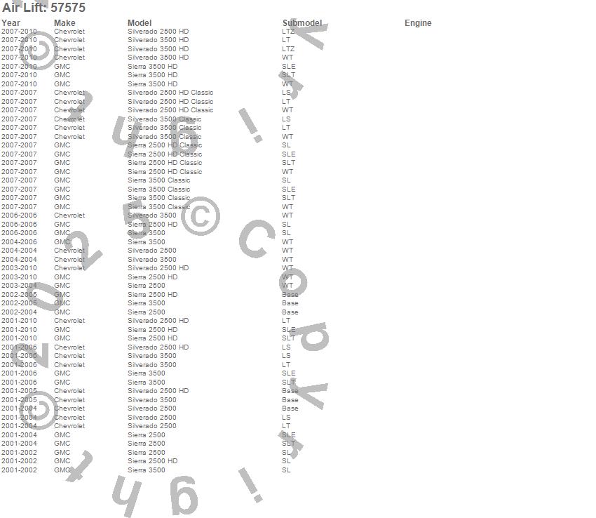 Below is an abbreviated list of applications for the LoadLifter 7500 XL Air Spring Kit.