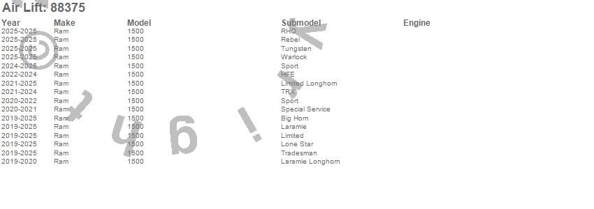 Below is an abbreviated list of applications for the LoadLifter 5000 Ultimate Air Spring Kit.