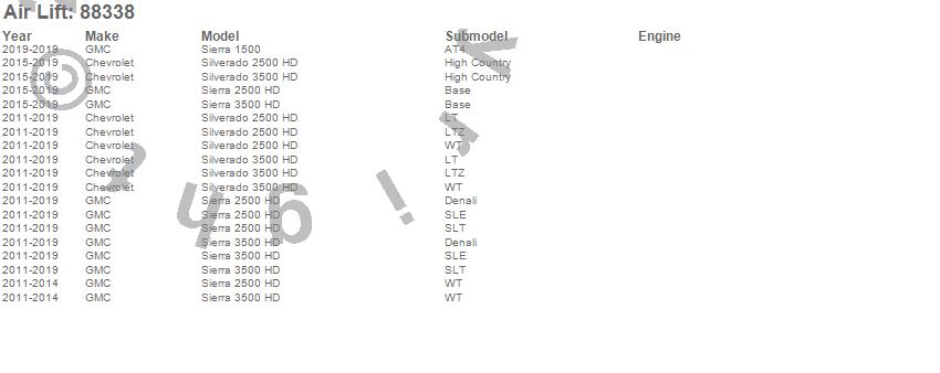 Below is an abbreviated list of applications for the LoadLifter 5000 Ultimate Air Spring Kit.