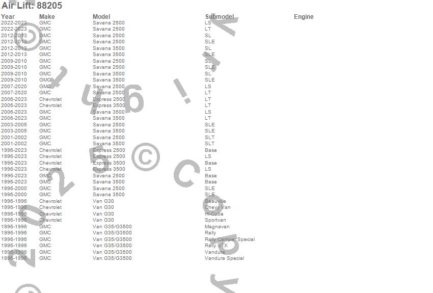 Below is an abbreviated list of applications for the LoadLifter 5000 Ultimate Air Spring Kit.