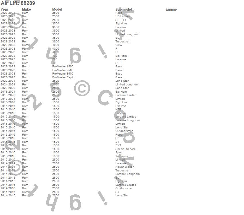 Below is an abbreviated list of applications for the LoadLifter 5000 Ultimate Air Spring Kit.