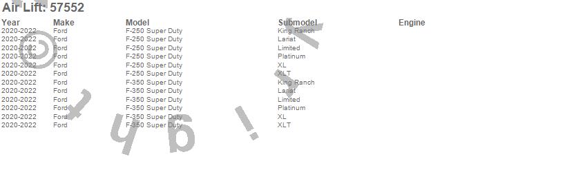 Below is an abbreviated list of applications for the LoadLifter 7500 XL Air Spring Kit.