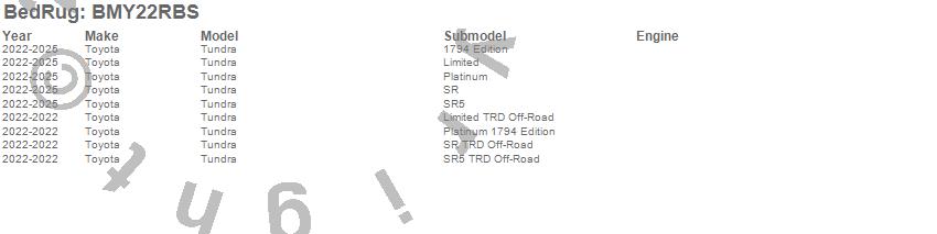Below is an abbreviated list of applications for the BedRug Floor Truck Bed Mat.