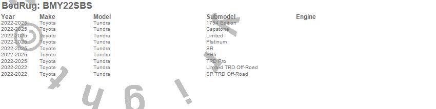 Below is an abbreviated list of applications for the BedRug Floor Truck Bed Mat.