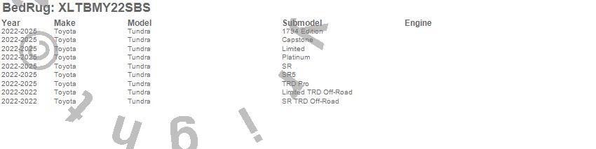 BedRug - XLT Mat P/N XLTBMY22SBS Features: