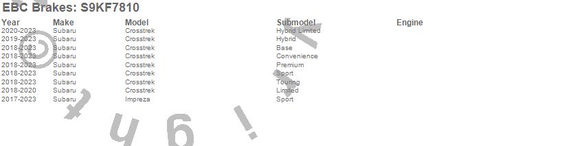 Below is an abbreviated list of applications for the S9 Kits Yellowstuff and USR Rotors.