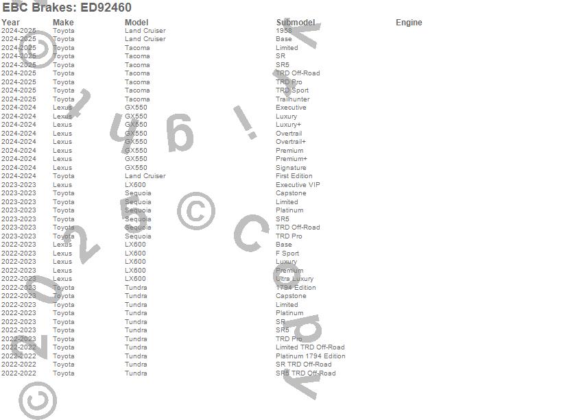 Below is an abbreviated list of applications for the Truck/SUV Extra Duty Brake Pads.