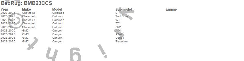 Below is an abbreviated list of applications for the BedRug Floor Truck Bed Mat.