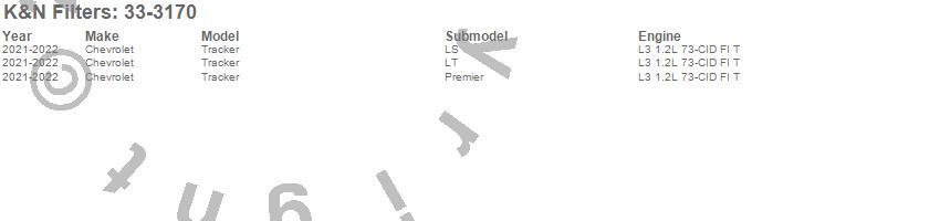 Below is an abbreviated list of applications for the Air Filter.