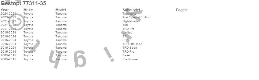 Tacoma, Toyota, 2024, 2023, 2022, 2021, 2020, 2019, 2018, 2017, 2016, 2015, 2014, 2013, 2012, 2011, 2010, 2009, 2008, 2007