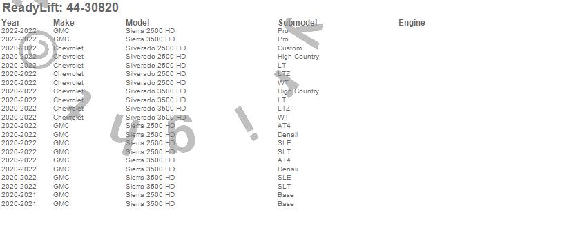 Below is an abbreviated list of applications for the Big Lift Kit w/Shocks.