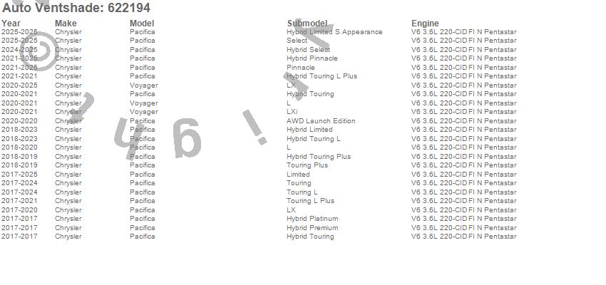 Pacifica, Voyager, Chrysler, 2025, 2024, 2023, 2022, 2021, 2020, 2019, 2018, 2017