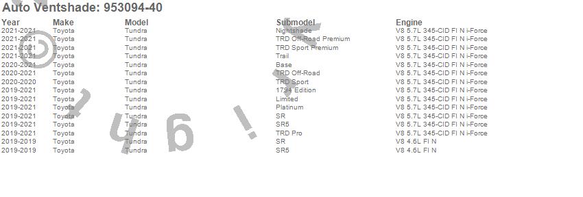 Below is an abbreviated list of applications for the Aeroskin LightShield Pro Hood Protector.