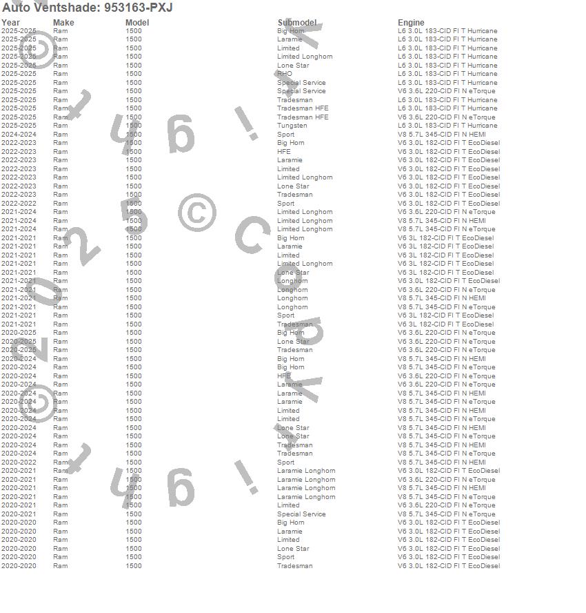 1500, Ram, 2025, 2024, 2023, 2022, 2021, 2020