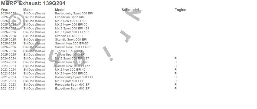 Backcountry Sport 600 EFI, Expedition Sport 600 EFI, MX Z Neo 600 EFI-40, MX Z Neo+ 600 EFI-55, MX Z Sport 600 EFI, MX Z Sport 600 EFI 129, MX Z Sport 600 EFI 137, Renegade Sport 600 EFI, Summit Neo 600 EFI-40, Summit Neo 600 EFI-55, Summit Neo+ 600 EFI-55, Summit Neo+ 600 EFI-85, Ski-Doo (Snow), 2025, 2024, 2023, 2022, 2021