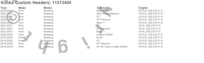 Kooks Custom Headers - Connection Pipes P/N 11513400 Features: